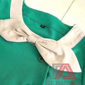 - Kiểu dáng: Thiết kế theo yêu cầu với áo tay ngắn cài khuy có phối nơ + quần âu blouse ống đứng lưng bo thun sau
