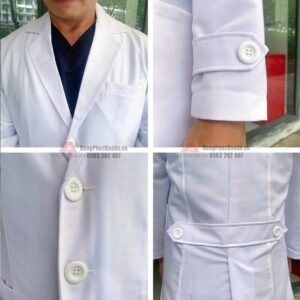 - Vạt sau xẻ, form dáng hơi xòe và phồng bên dưới, vừa tạo sự thuận tiện khi di chuyển, vừa duyên dáng, đặc biệt thích hợp với bác sĩ nữ.