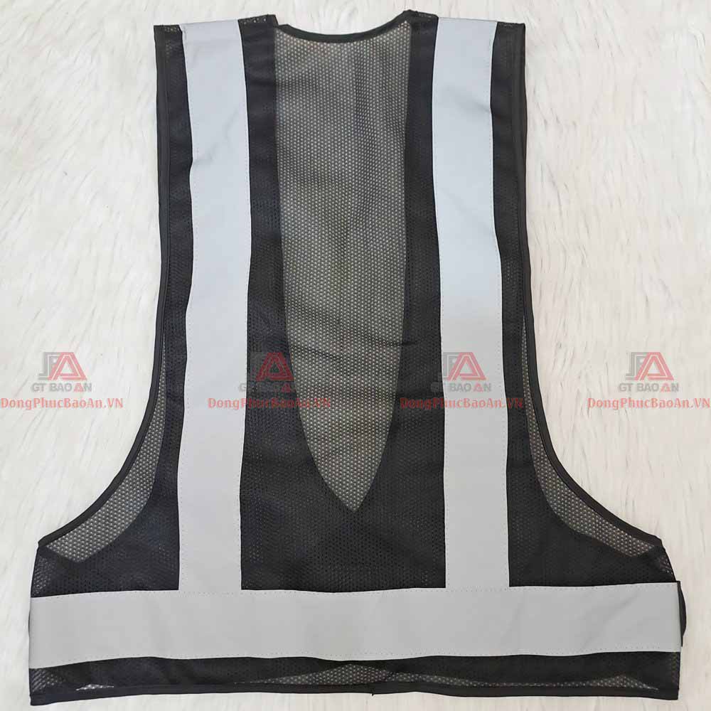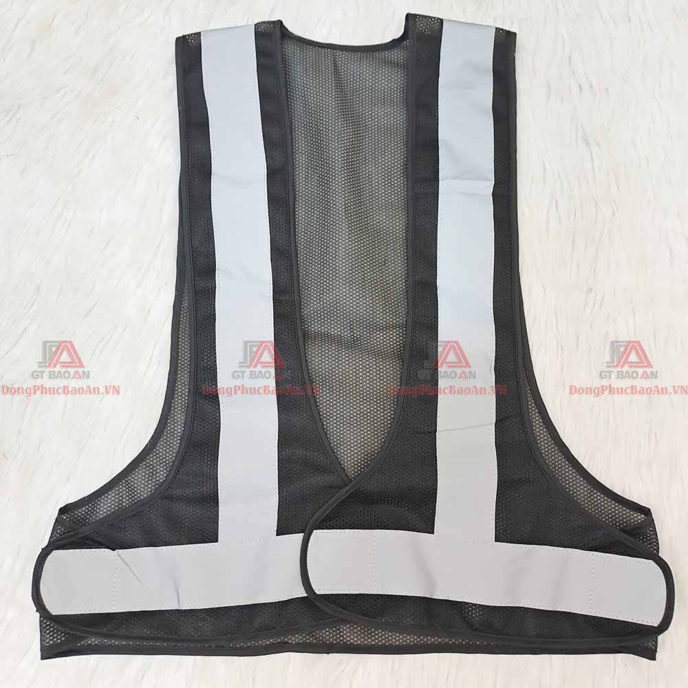- Thân sau: 2 dải phản quang may dọc từ vai đổ xuống ngang lưng, 2 dải phản quang may ngang sau lưng