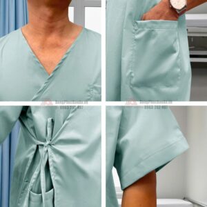 Chi tiết mẫu áo phẫu thuật bệnh nhân kaki cotton màu xanh ngọc