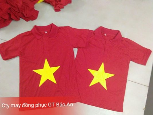 Xưởng may GT Bảo An chuyên nhận hợp đồng may áo thun cờ đỏ sao vàng có cổ với số lượng lớn, giá thành “tận xưởng” vì công ty xây dựng xưởng may trực tiếp mà không qua hình thức trung gian khác.