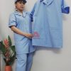 - Áo blouse cổ tim mặc bên trong: Áo được thiết kế với kiểu dáng liền tròng cổ. Cổ được may với kiểu dáng cổ tim, mẫu cổ áo cổ điển của áo blouse điều dưỡng, bác sĩ. Cổ áo cổ tim mang đến hình ảnh nhẹ nhàng, thanh thoát và lịch thiệp cho nhân viên nữ. Áo có form dáng rộng rãi, thuận tiện cho người mặc trong quá trình hoạt động, di chuyển. Áo có 2 túi vuông phía trước.