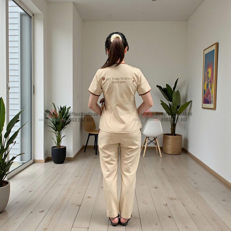 - Ứng dụng: Đồng phục cho kỹ thuật viên, tư vấn viên hoặc nhân viên bán hàng của spa, cơ sở làm đẹp.