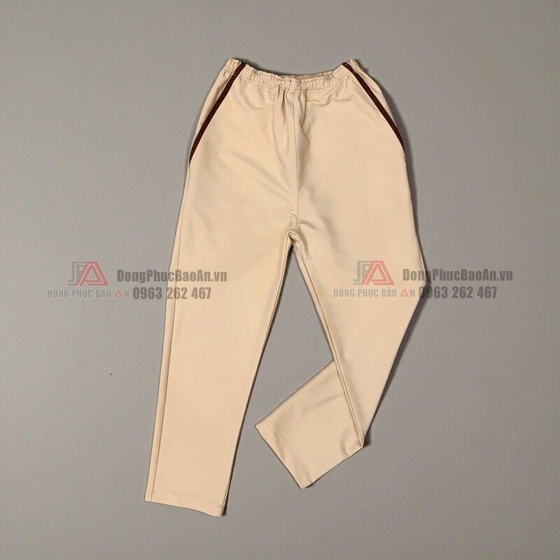 Hướng đến đối tượng người mặc là các kỹ thuật viên, tư vấn viên nên quần đồng phục spa được bo thun co giãn ở lưng. Thiết kế này giúp mọi cử động đều thoải mái, không bị gò bó hay chật chội. Hai túi xéo tiện dụng để đựng một vài vật dụng cá nhân nhỏ. Túi được viền đồng màu với áo tạo nên tổng thể hài hòa.