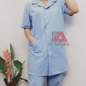 Bộ đồng phục lấy sắc xanh nhạt làm chủ đạo. Đây là một trong những màu sắc cơ bản khi lựa chọn may áo blouse. Và màu sắc chuyên biệt cho những áo blouse chuyên dụng như điều dưỡng, phẫu thuật viên…