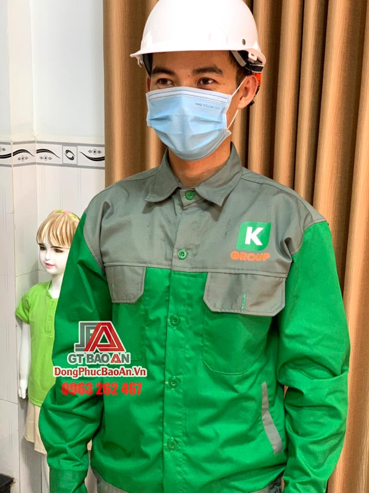 Công ty may quần áo bảo hộ tại TPHCM GT Bảo An giới thiệu đến quý khách hàng bộ quần áo bảo hộ ngành cơ khí cao cấp tay dài màu xanh phối xám. Đây là mẫu quần áo bảo hộ cao cấp được GT Bảo An thiết kế theo yêu cầu cho đơn vị K Group.