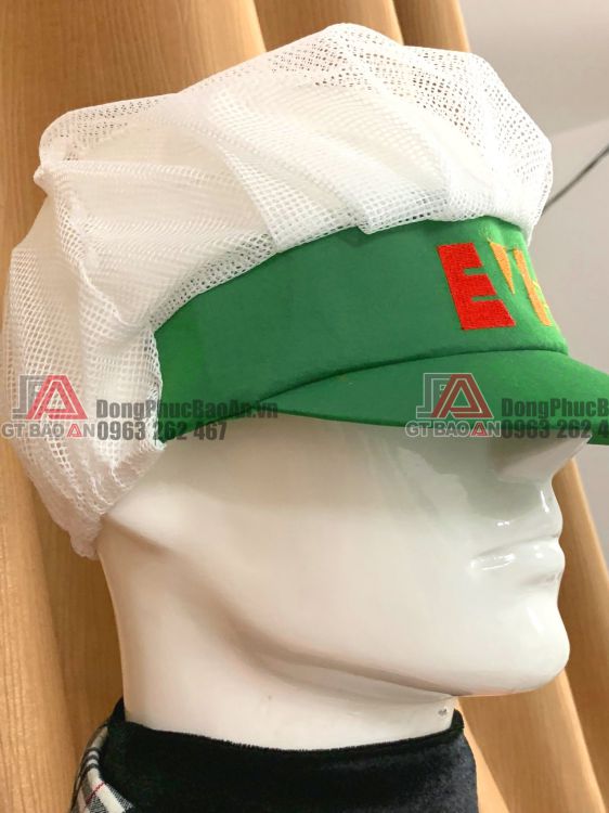 Mẫu nón lưới trùm tóc cho công nhân thêu logo công ty E- Viet Solution