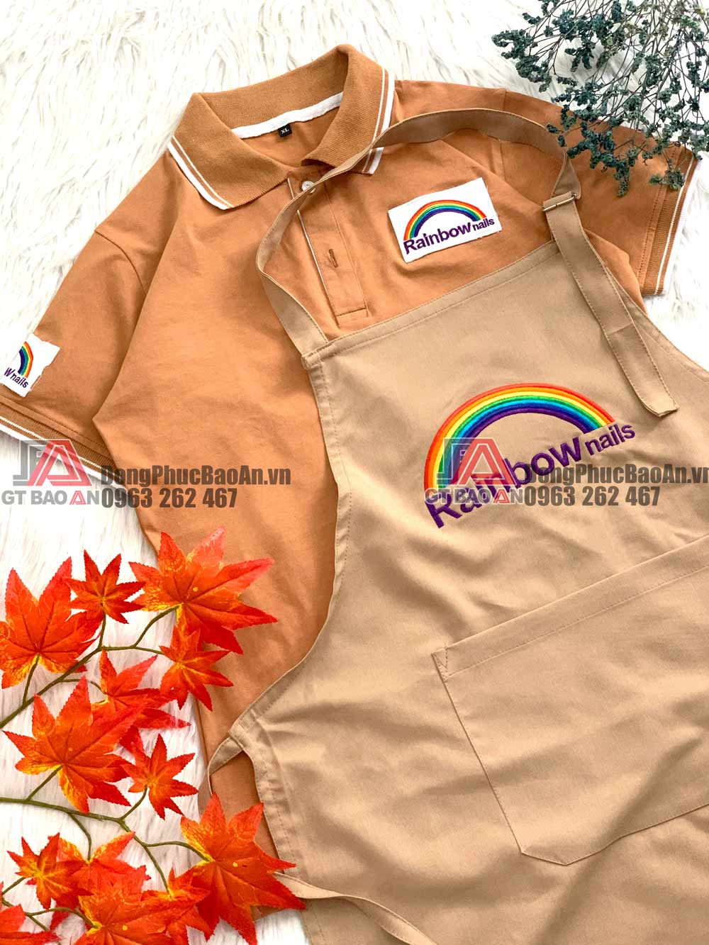 GT BẢO AN – Xưởng may uy tín chất lượng TPHCM đã được Rainbow Nails tin tưởng chọn để đặt may bộ đồng phục nhân viên gồm combo áo thun đồng phục và tạp dề tiệm nails. Hãy cùng tham khảo nhé!