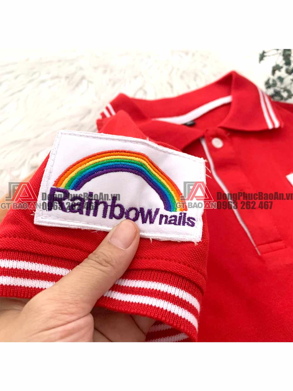 Mẫu áo thun đồng phục Rainbow Nails có thiết kế tối giản. Áo được may với kiểu dáng áo thun cổ trụ cổ điển. Có xẻ tà.