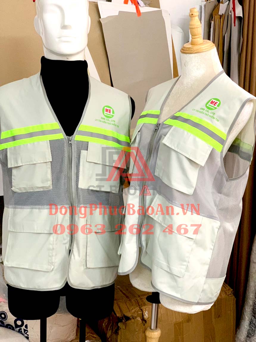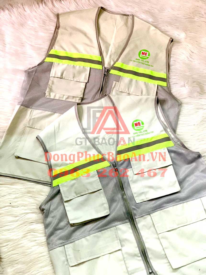 Đặt may áo gile bảo hộ phản quang có in logo theo yêu cầu TPHCM – Mẫu áo gile nhiều túi GME
