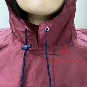 - Cổ áo áo mưa cao, có phần cổ có dây rút tiện lợi, giúp cố định nón ở phần trên và thu hẹp phần trống ở cổ, tránh nước mưa tạt vào người.