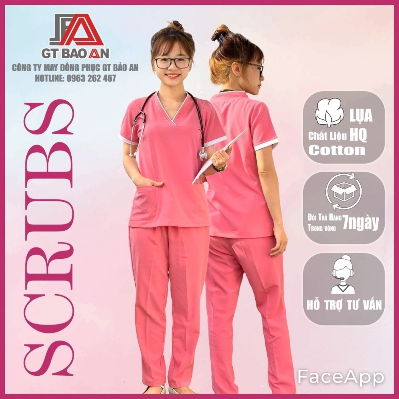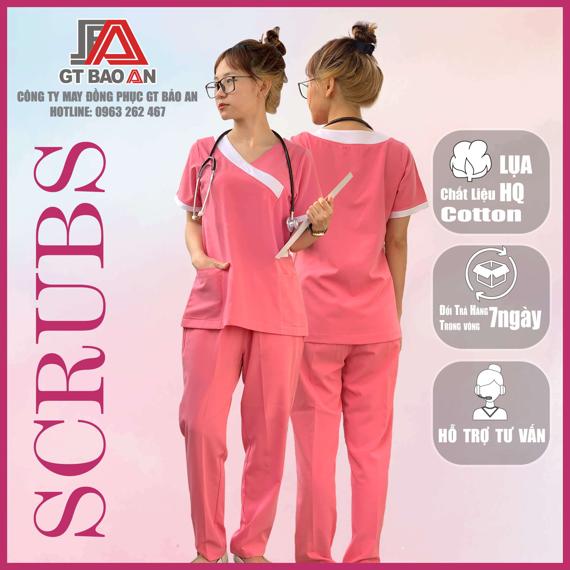 Tại GT BẢO AN đang có chương trình [GIÁ SỐC 169K/Scrubs] Bộ Scrubs nữ màu hồng vải Cotton Lụa cao cấp mới nhất, Scrubs đồng phục bác sĩ, spa giá rẻ TPHCM. Nhanh tay lên đơn hàng, nhận ngay ưu đãi cùng GT Bảo An!