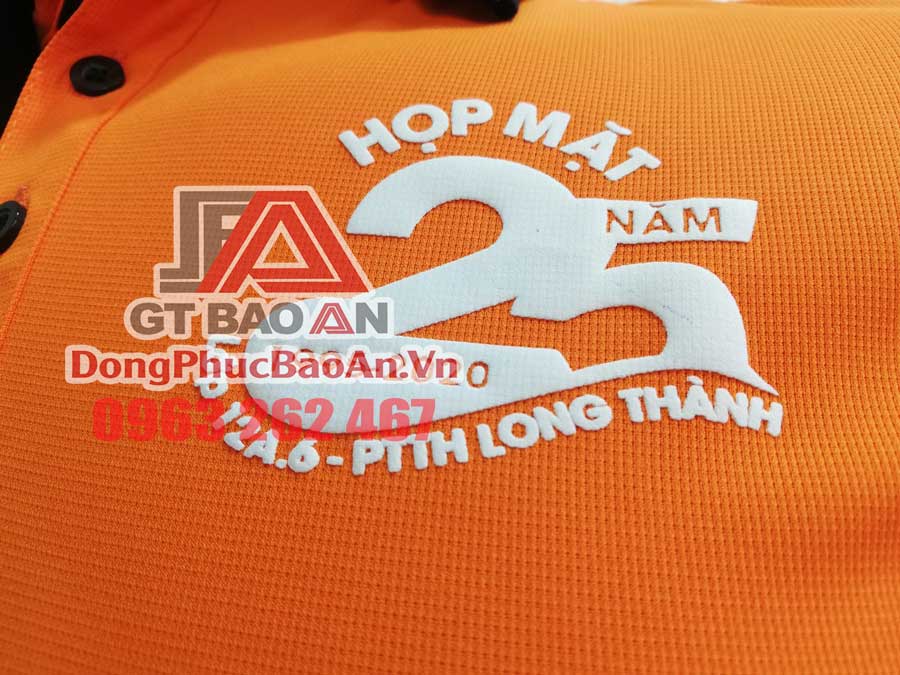 In logo đồng phục dạng nổi này chỉ phù hợp với hình ảnh, logo chữ đơn giản. Hình in đẹp mắt, ấn tượng nhưng độ bền không cao, dễ bị phản ứng và tác động mạnh với dung môi cũng như các chất giặt tẩy.