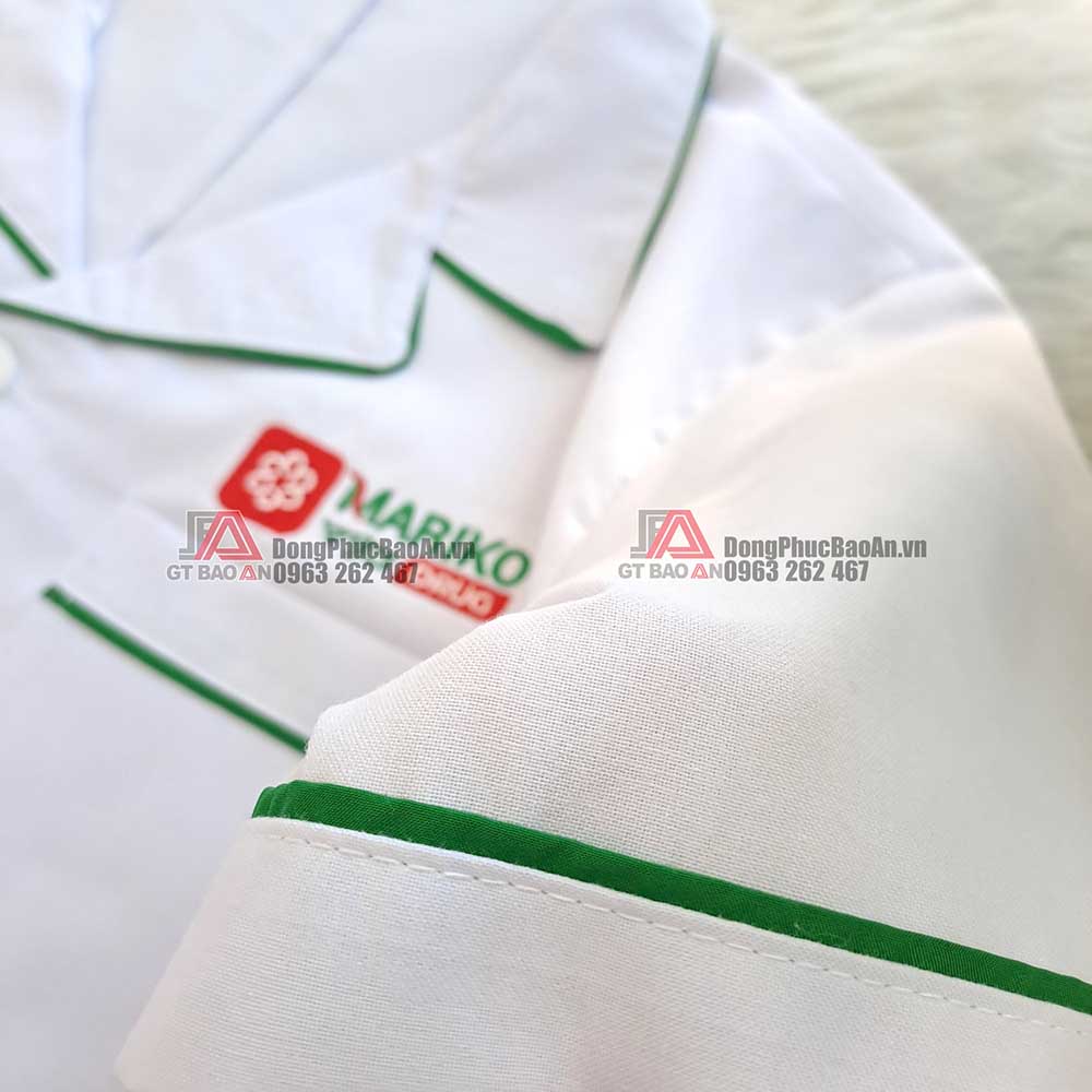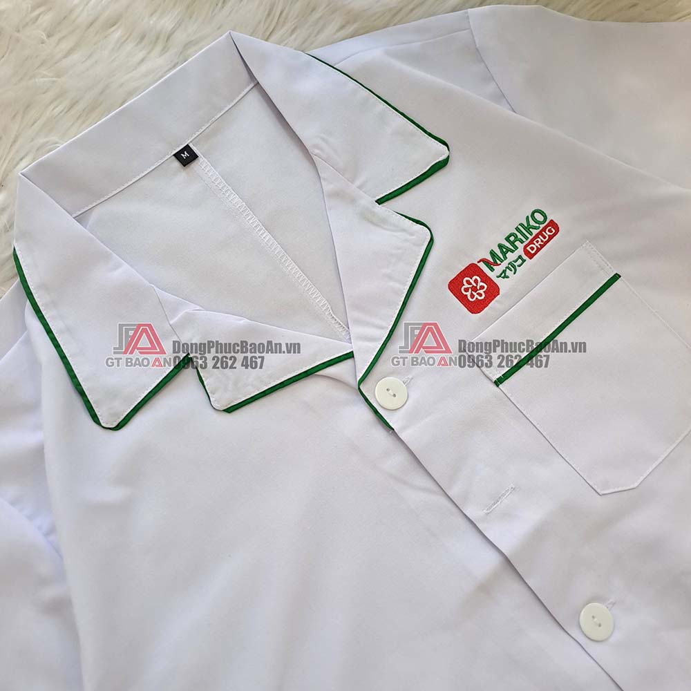 Áo blouse trắng dược sĩ tay ngắn thêu logo nhà thuốc Mariko