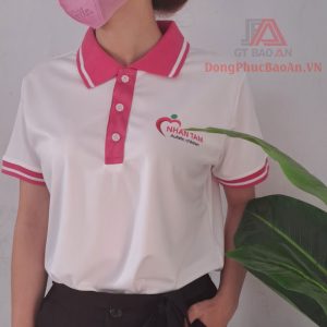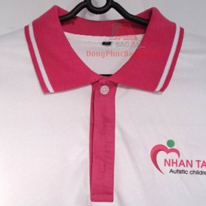 Mẫu áo thun đồng phục cổ bẻ màu trắng phối hồng cho trung tâm nghiên cứu, tư vấn, trị liệu tâm lý trẻ em Nhân Tâm. Đây là đồng phục áo thun do Công ty Bảo An nhận may và sản xuất theo yêu cầu của trung tâm. Với nhiều năm kinh nghiệm trong lĩnh vực sản xuất Bảo An tự tin mang đến những bộ đồng phục đẹp và chất lượng khu vực TPHCM. Cùng xem sản phẩm ngay sau đây nhé!