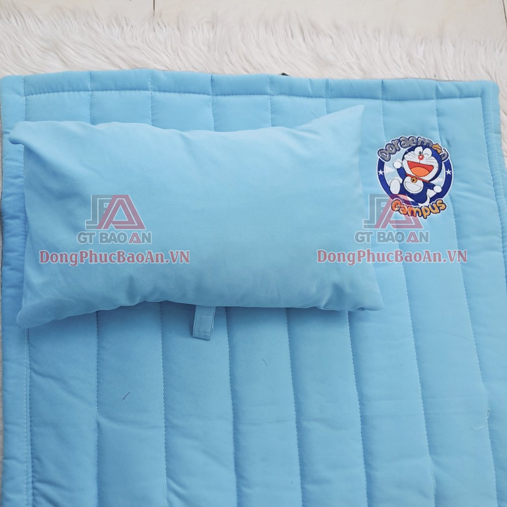 Bộ nệm gối cho bé mầm non thêu logo theo yêu cầu Mầm non Doraemon