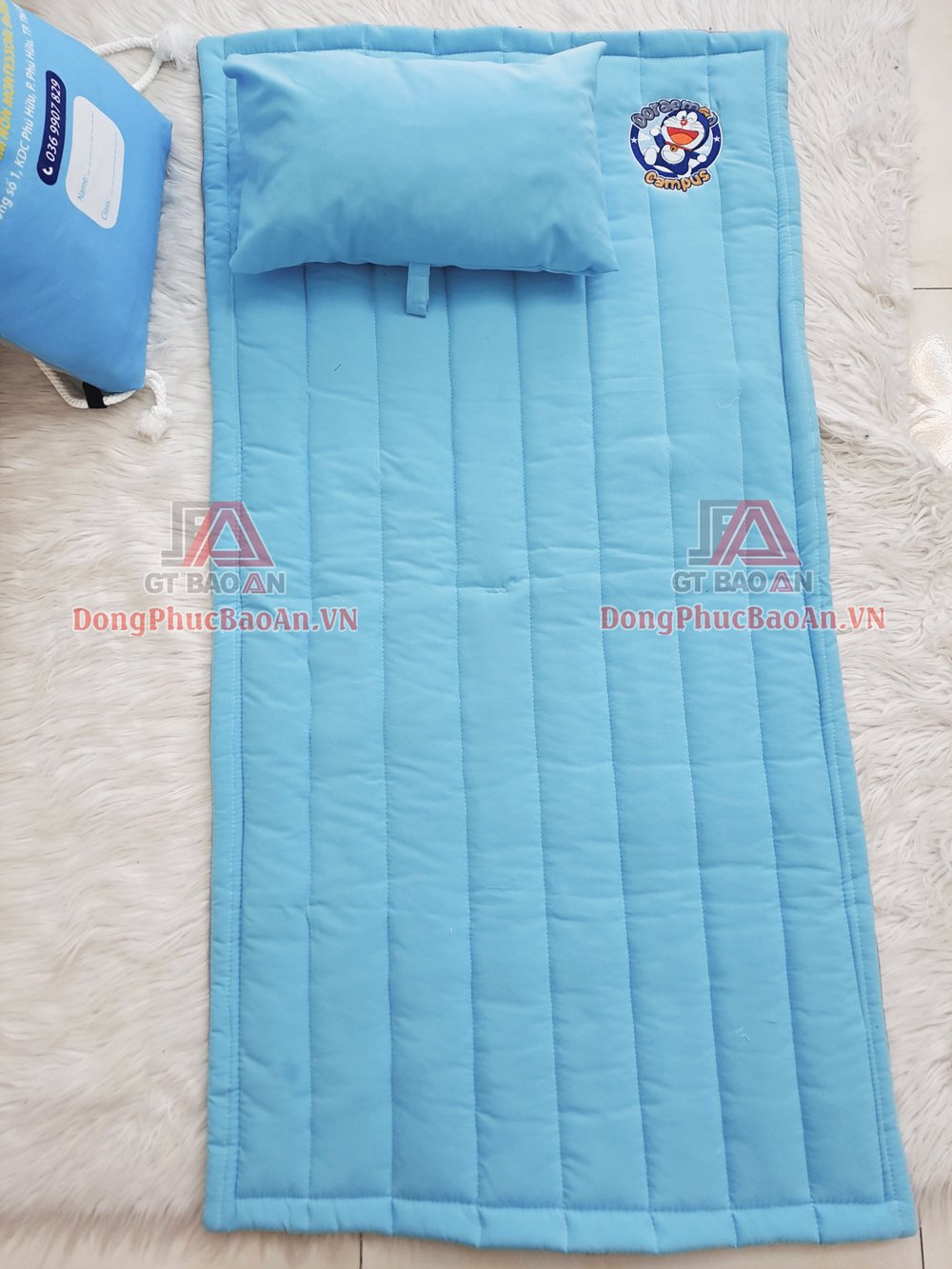 GT BẢO AN xin giới thiệu tới quý khách hàng mẫu bộ nệm gối cho bé mầm non đi học đẹp, cao cấp giá tốt TPHCM theo yêu cầu Mầm non Đoraemon. Mời tham khảo!