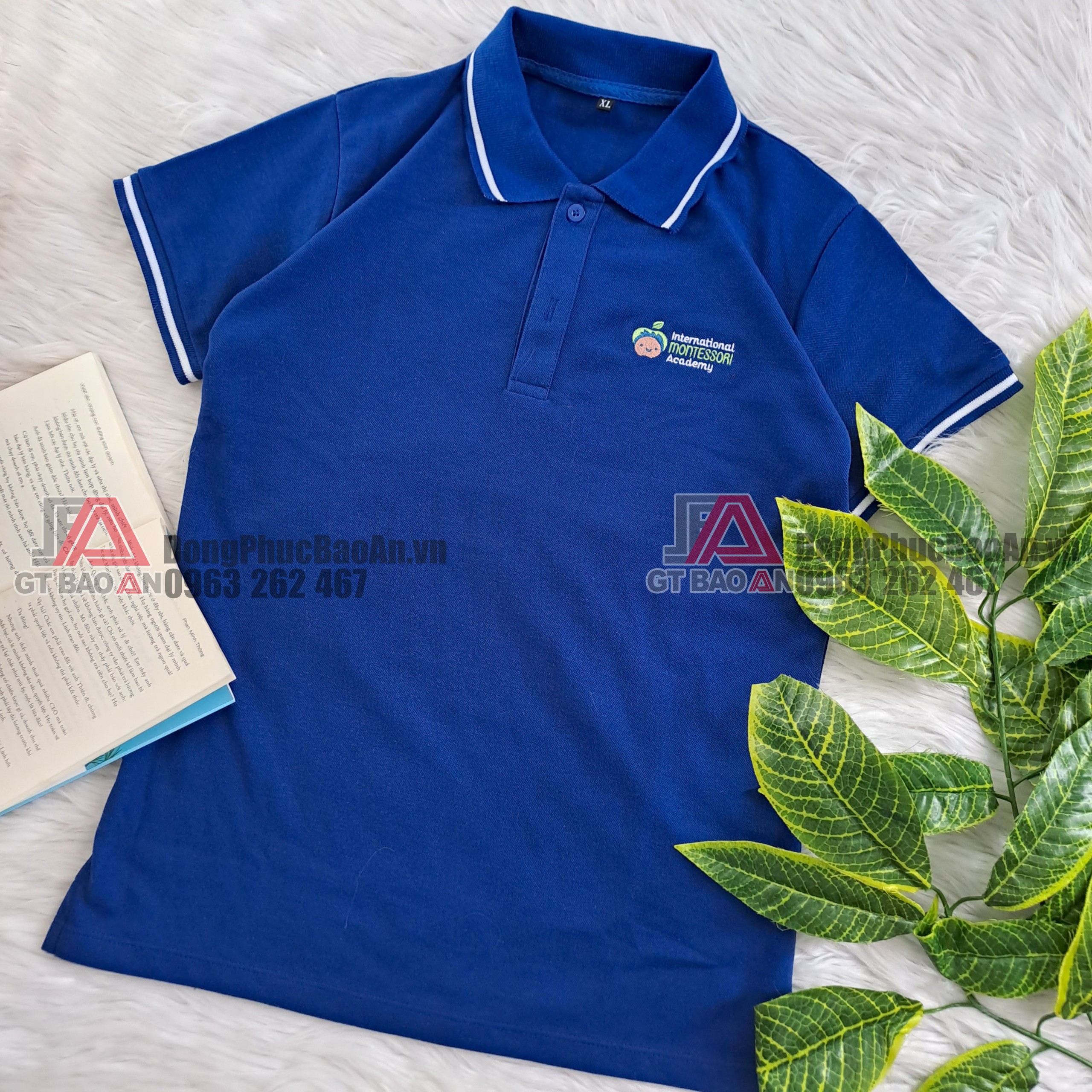 Áo thun đồng phục mầm non của Trường Mầm non IMA là mẫu áo cổ bẻ, tay ngắn, form rộng rãi, để các bé vui chơi, hoạt động thoải mái. Áo màu xanh phối viền trắng. Màu sắc hài hòa, nhã nhặn mang lại sự thanh lịch, gọn gàng cho trẻ khi mặc.