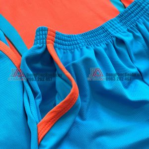 Bộ đồng phục thể dục mầm non Thỏ Ngọc với thiết kế đơn giản, bao gồm áo màu cam bo tay xanh da, 2 bên áo có đường sọc cùng màu bo, quần xanh da. Logo trường được in phía trước áo và sau lưng áo.