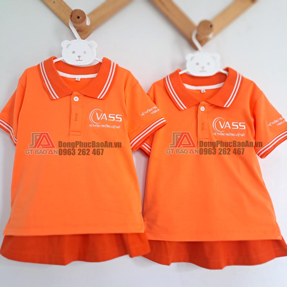 GT BẢO AN – Xưởng may đồng phục uy tín chất lượng TPHCM với nhiều năm trong lĩnh vực may mặc. Đồng phục mầm non cho học sinh tại BẢO AN được sản xuất theo yêu cầu với những sản phẩm chất lượng, giá cả phải chăng. Cùng xem mẫu quần áo học sinh mầm non màu cam năng động cho bé theo yêu cầu- của Mầm non quốc tế Việt Mỹ.