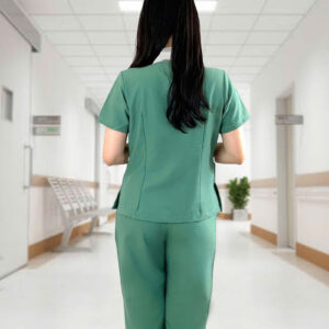 Mẫu Scrubs nữ màu xanh vỏ đậu phối nơ trắng được đánh giá rất cao về tính thẩm mỹ. Từ thiết kế đến chất liệu đều góp phần tôn dáng người mặc và mang lại hình ảnh chỉn chu, chuyên nghiệp.