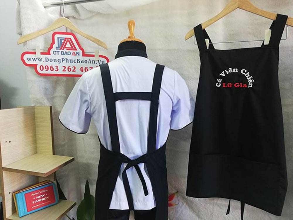 GT BẢO AN xin giới thiệu mẫu tạp dề đeo vai dây chữ H nấu bếp, hair salon, phục vụ, nhận in thêu logo giá rẻ TPHCM. Mời bạn tham khảo!
