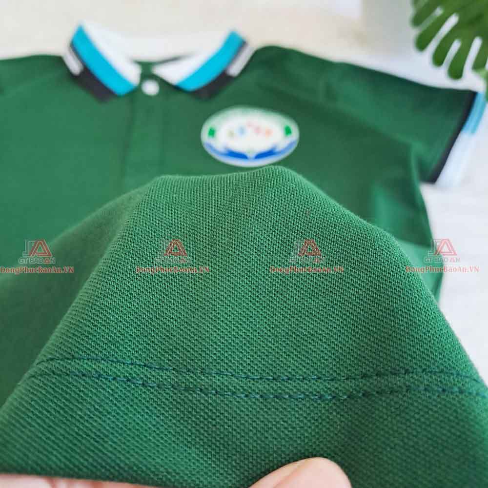 Áo thun giáo viên giá rẻ trường mầm non Việt Anh được may bằng chất vải cá sấu 65: