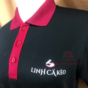 Áo đồng phục nhân viên quán ăn Linh Cá Kèo Nha Trang có kiểu dáng cơ bản, hướng đến sự thoải mái cho người mặc trong quá trình di chuyển và làm việc. Áo thun tay ngắn, cổ bẻ, không xẻ tà. Áo có 2 màu được may dành riêng cho nam và nữ. Áo nữ màu đen phối bo cổ và bo tay màu đỏ đô. Áo nam màu trắng phối bo cổ và bo tay màu đỏ đô theo yêu cầu.