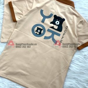 Mẫu áo thun đồng phục nam nữ quán cafe màu kem