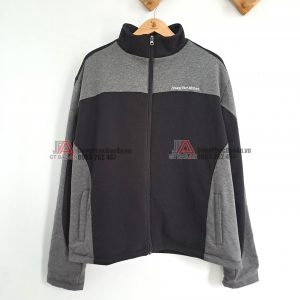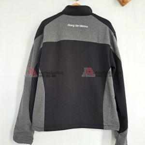 Mẫu áo khoác đồng phục công ty honda Hoàng Việt được may cắt phối màu: đen phối xám. Đây là hai màu chủ đạo đại diện cho đơn vị Hoàng Việt. Các đường phối may được thực hiện chắc chắn, khéo léo.