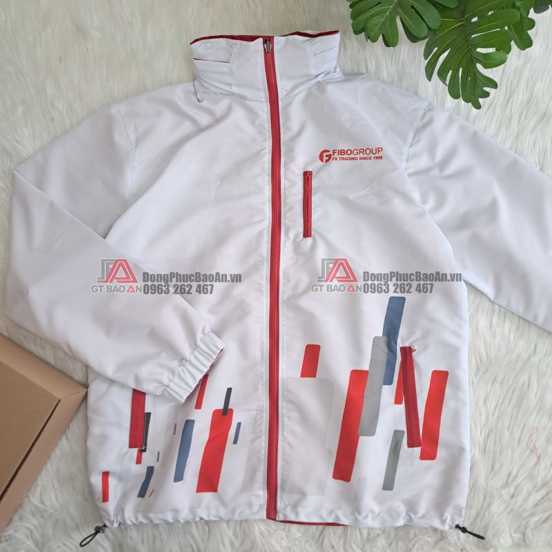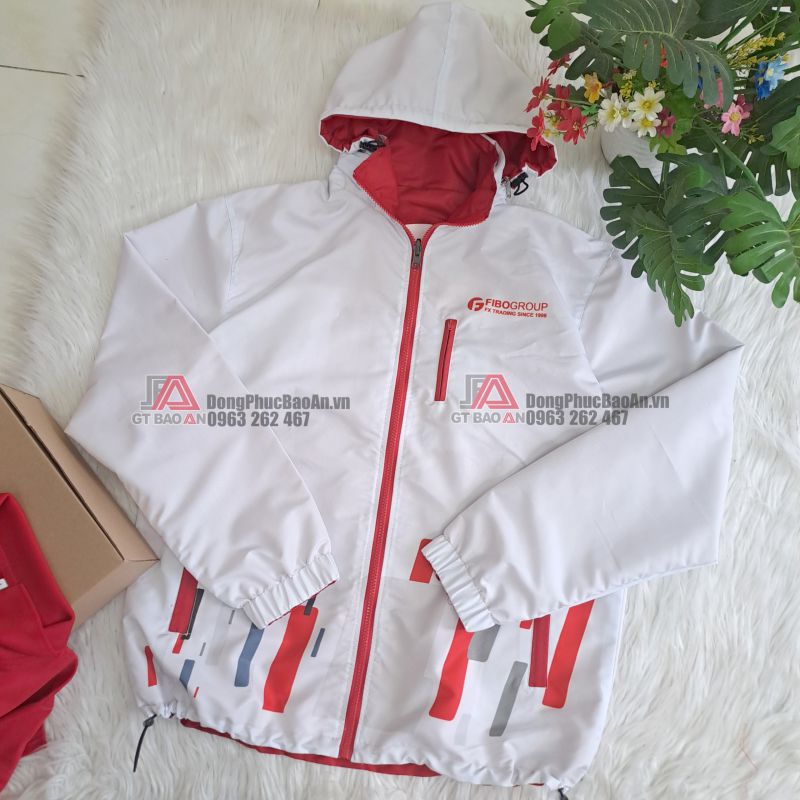 Mẫu áo khoác dù 2 mặt cao cấp đồng phục công ty in logo FIBOGROUP