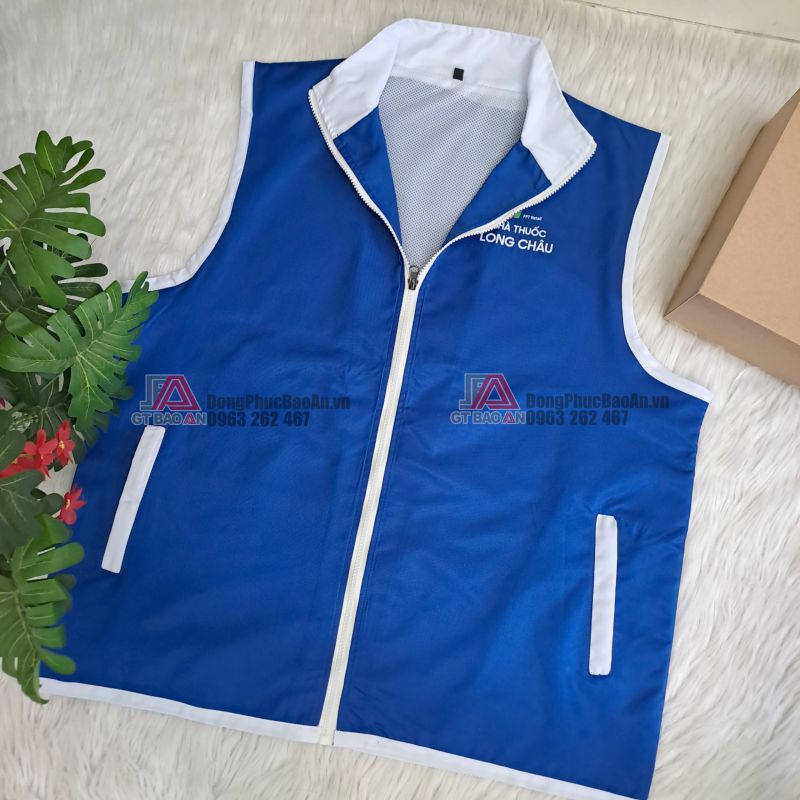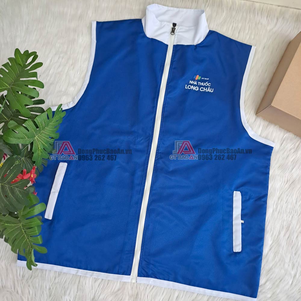 Mẫu áo khoác dù cộc tay, áo gile đồng phục nhà thuốc Long Châu