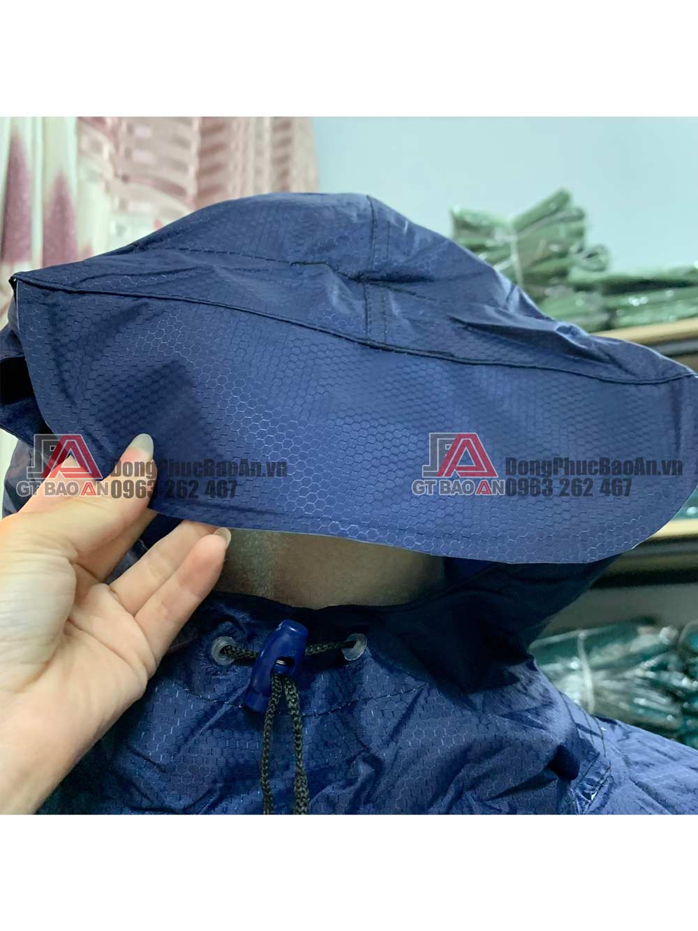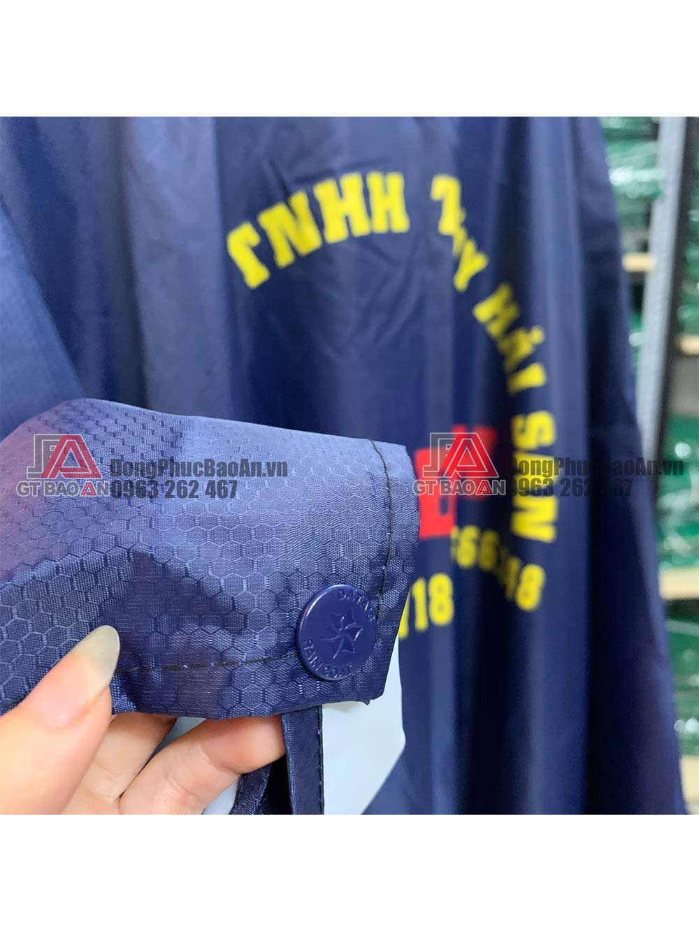 Chi tiết mẫu áo mưa cánh dơi quà tặng vải dù vân tổ ong cao cấp