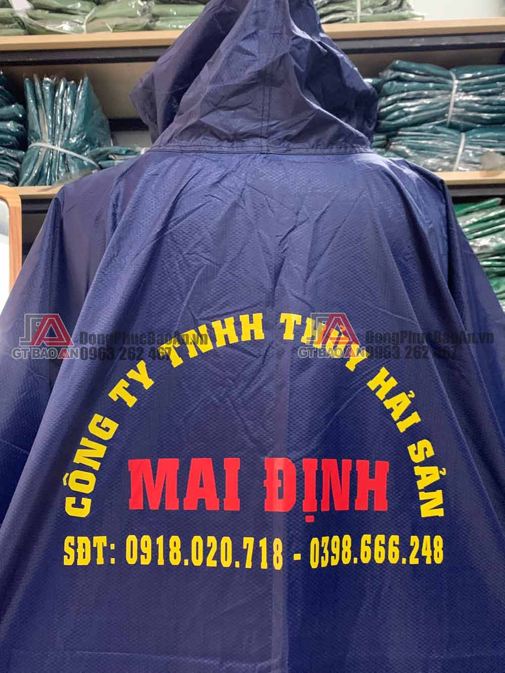 Thông tin mẫu áo mưa cánh dơi quà tặng công ty thủy hải sản Mai Định
