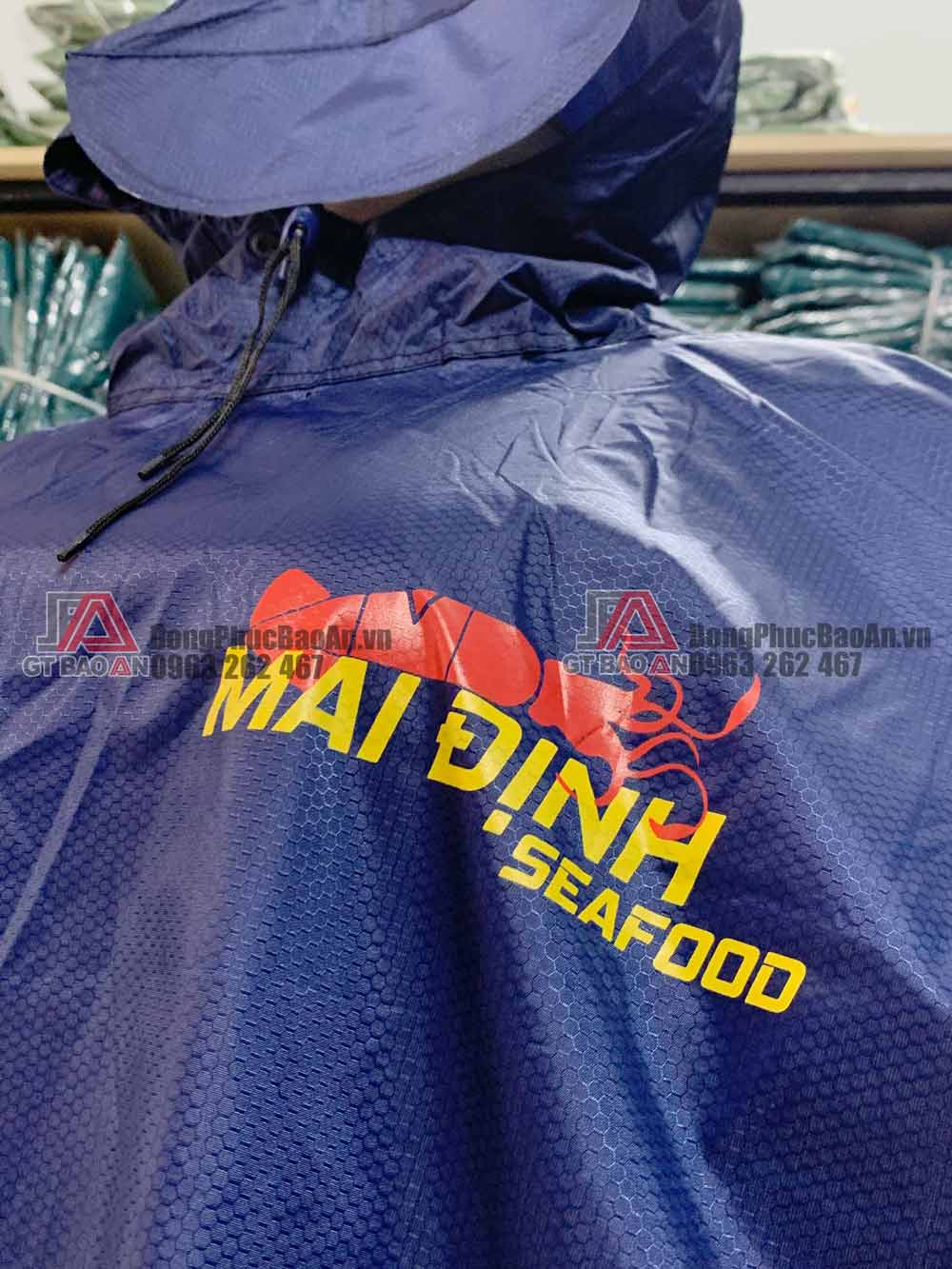 Dưới đây là mẫu áo mưa được GT BẢO AN – Xưởng may áo mưa theo yêu cầu TPHCM nhận thiết kế và sản xuất theo yêu cầu của công ty thủy hải sản Mai Định Seafood.