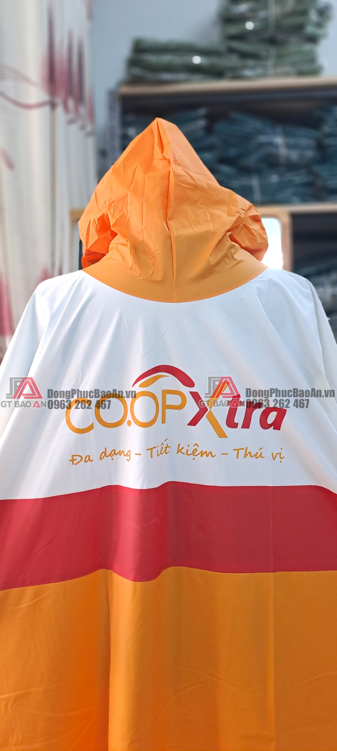 Dưới đây là mẫu áo mưa cánh dơi quà tặng được GT BẢO AN – Xưởng may áo mưa theo yêu cầu TPHCM nhận thiết kế và sản xuất theo yêu cầu của siêu thị CO.OP Xtra.