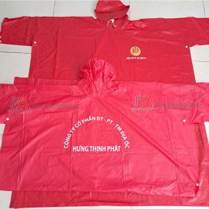 Áo mưa quà tặng Công Ty cổ phần ĐT-PT-TM địa ốc Hưng Thịnh Phát được sản xuất gồm hai vạt lớn được may liền hai bên cầu vai xuống cánh tay. Hai vạt áo lớn trước sau tạo không gian mở, che chắn cho người mặc khi gặp trời mưa. Sản phẩm giúp bảo vệ, che chắn đến 80% cơ thể người dùng.