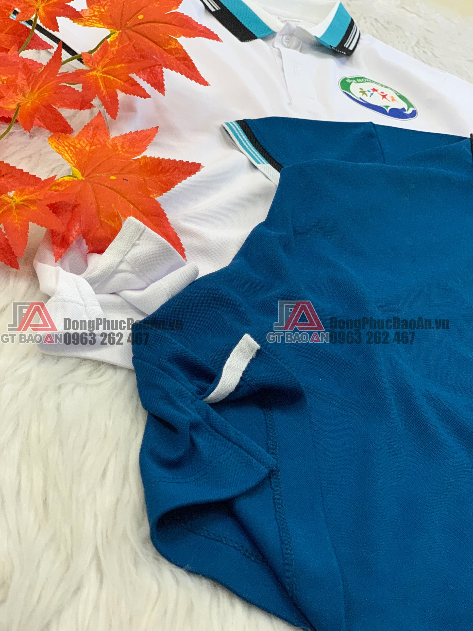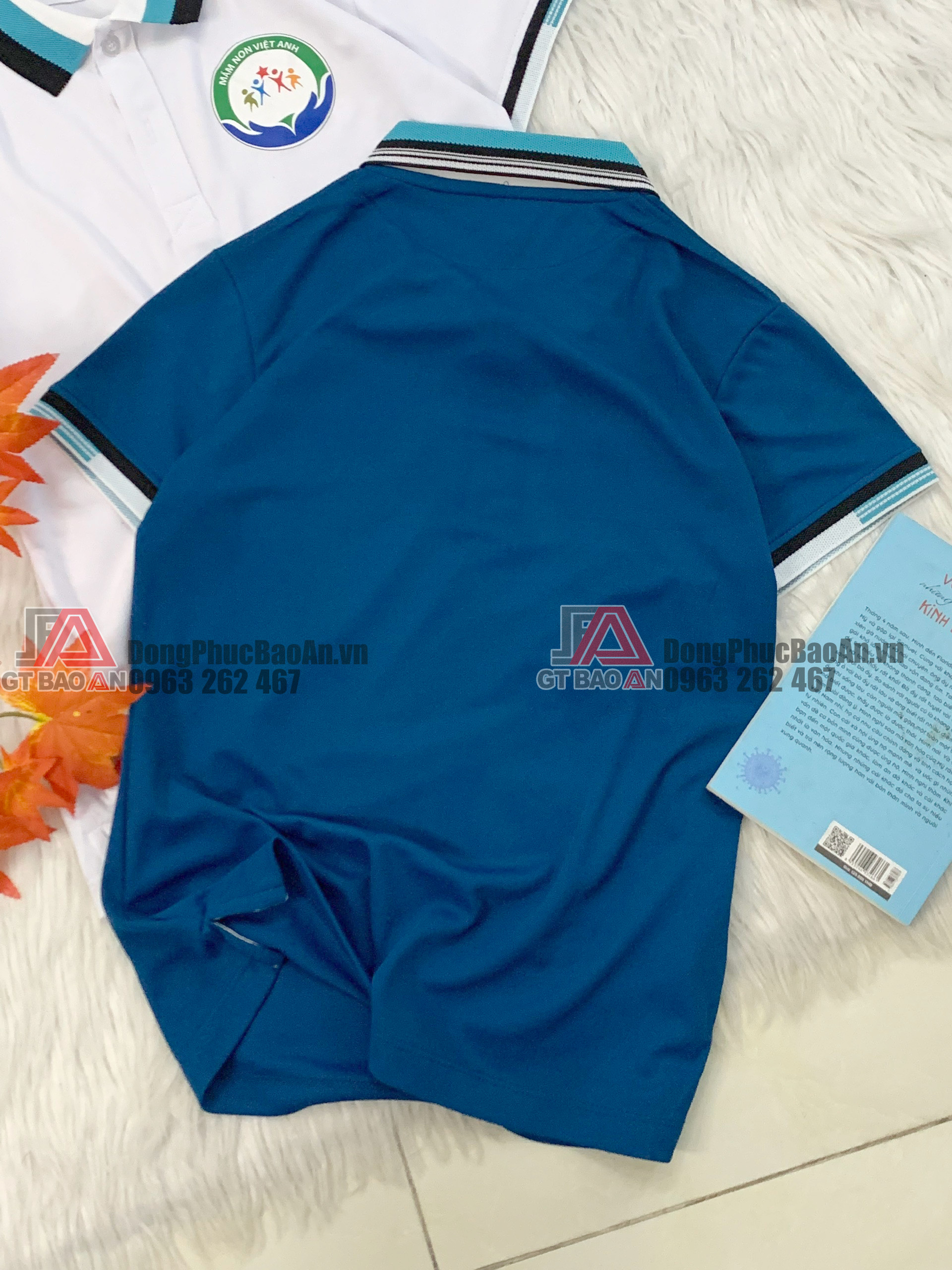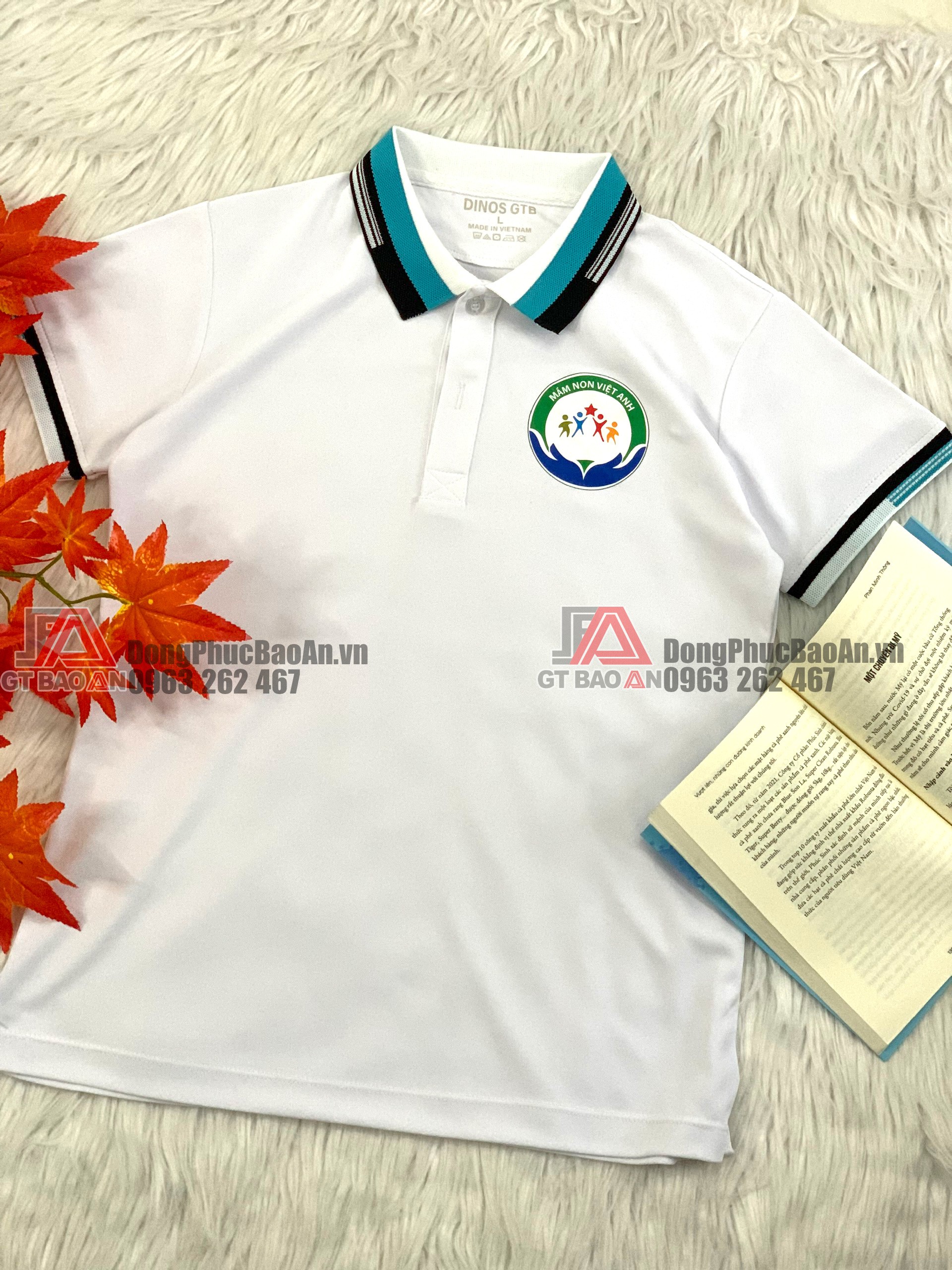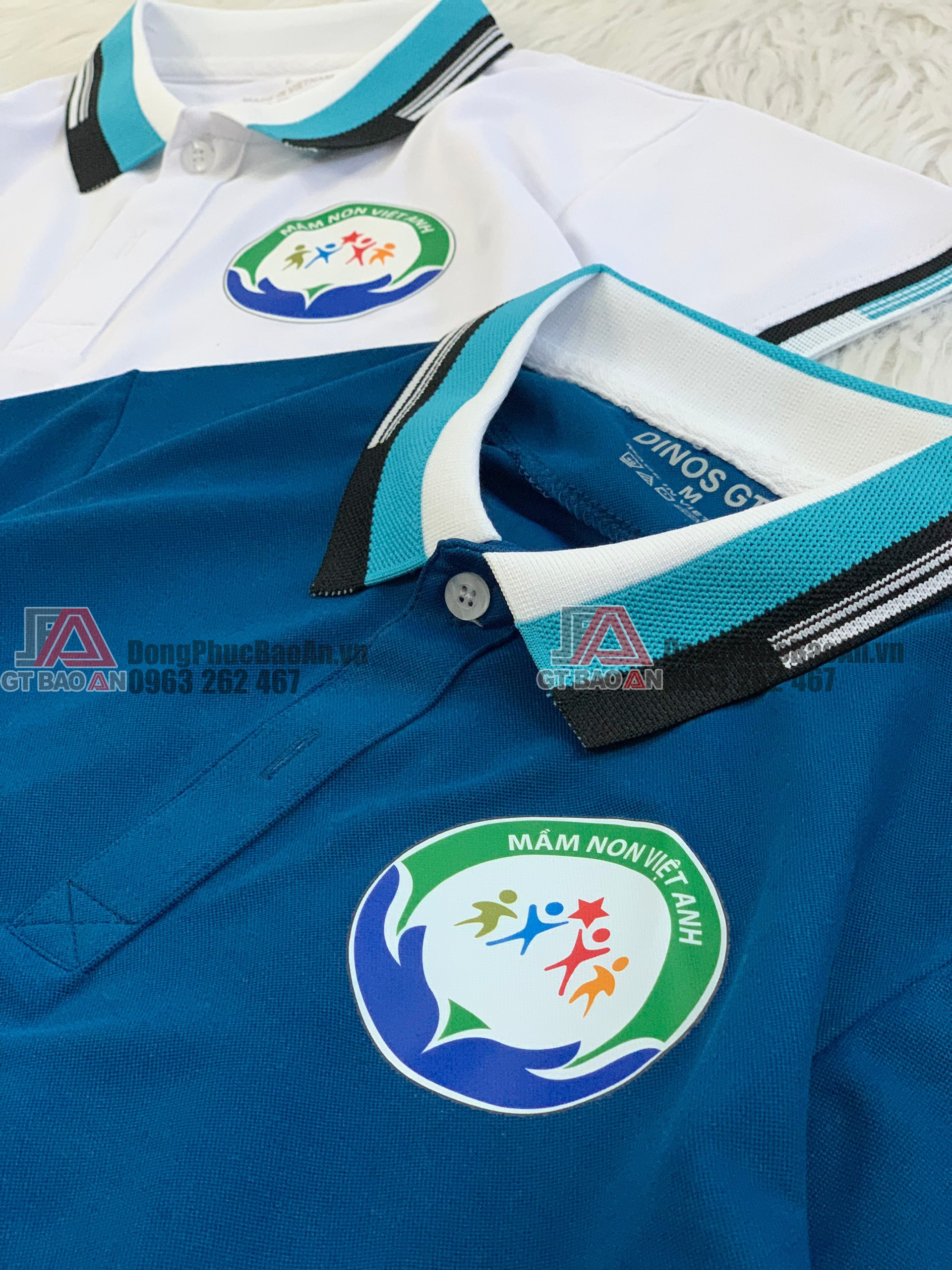 Áo thun đồng phục giáo viên theo yêu cầu trường mầm non Việt Anh có thiết kế đơn giản với kiểu dáng áo polo cổ trụ, vừa lịch sự nhưng không kém phần năng động. Với 2 màu: màu xanh và màu trắng, màu áo tôn lên vẻ đẹp thanh lịch cùng sự chuyên nghiệp cho giáo viên.