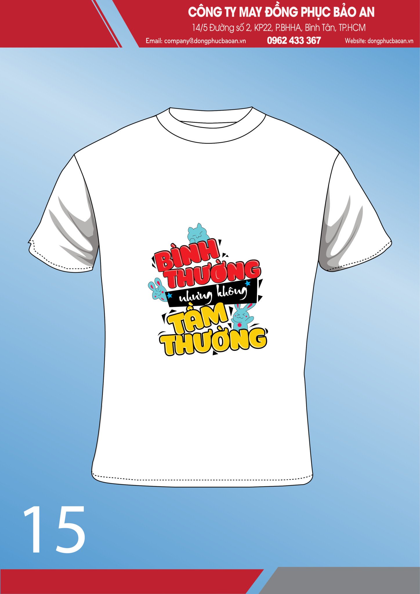 Hình ảnh in trên áo thun có thiết kế hài hước, những slogan độc đáo sẽ tạo được sự phá cách, năng động cho lứa tuổi học trò. Ví dụ như: Bình thường nhưng không tầm thường, anh em mình là một gia đình,…