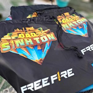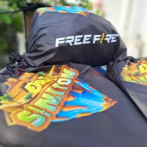 Dưới đây là mẫu balo dây rút in logo, in hình theo yêu cầu để làm quà tặng game thủ Free Fire Đảo Sinh Tồn. Mẫu do GT BẢO AN nhận thiết kế và sản xuất theo yêu cầu. Cùng tham khảo nhé!