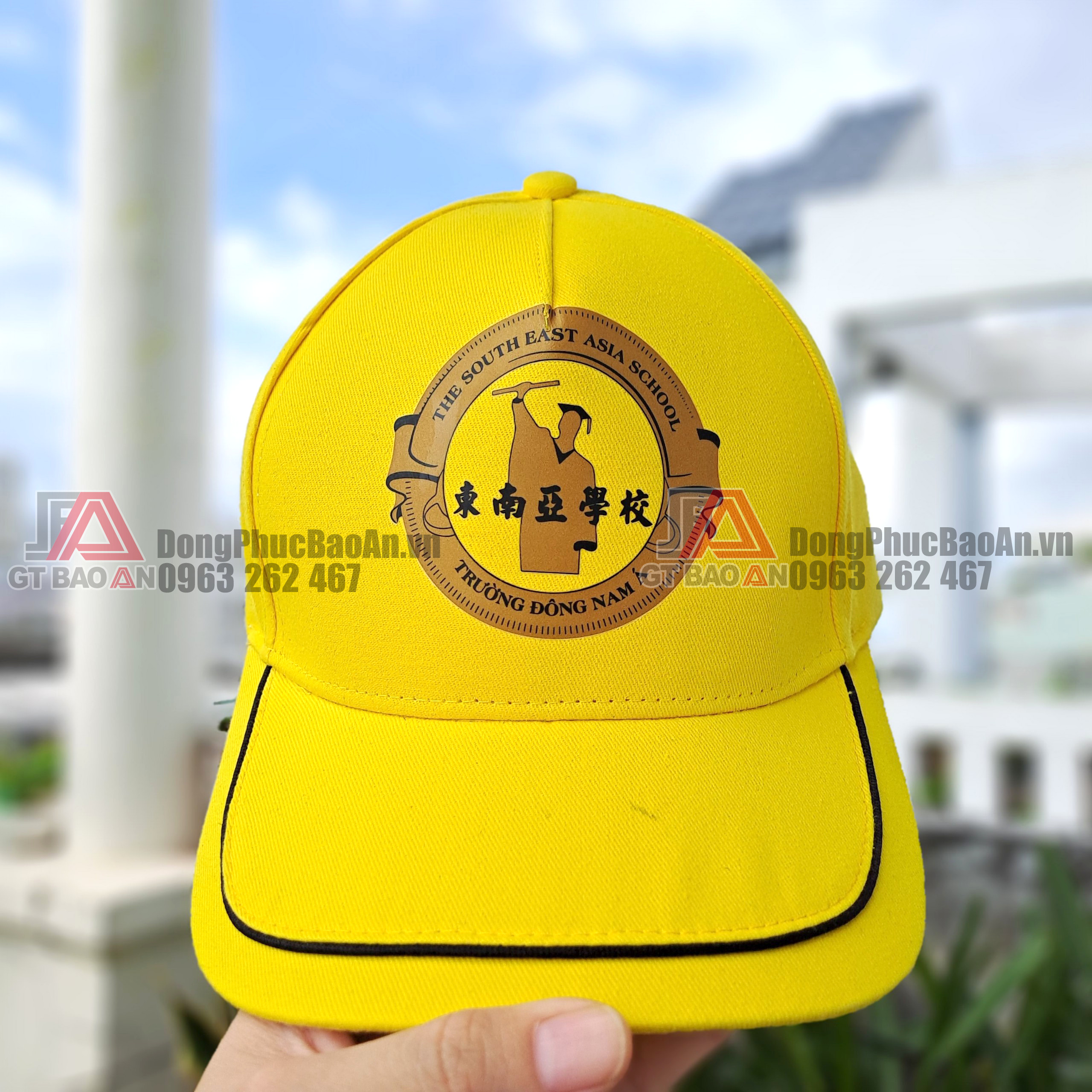 May nón kết đồng phục in logo giá rẻ TPHCM – Trường Đông Nam Á