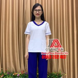 ![[May Sẵn] Bộ Scrubs bác sĩ cao cấp màu trắng phối xanh bích - Bộ quần áo Blouse cổ tim cho nữ y tá, điều dưỡng, hộ lý, hộ sinh bệnh viện, nhân viên thẩm mỹ viện - spa](https://dongphucbaoan.vn/wp-content/uploads/2021/08/scrubs-phoi-vien-02-300x300.jpg)