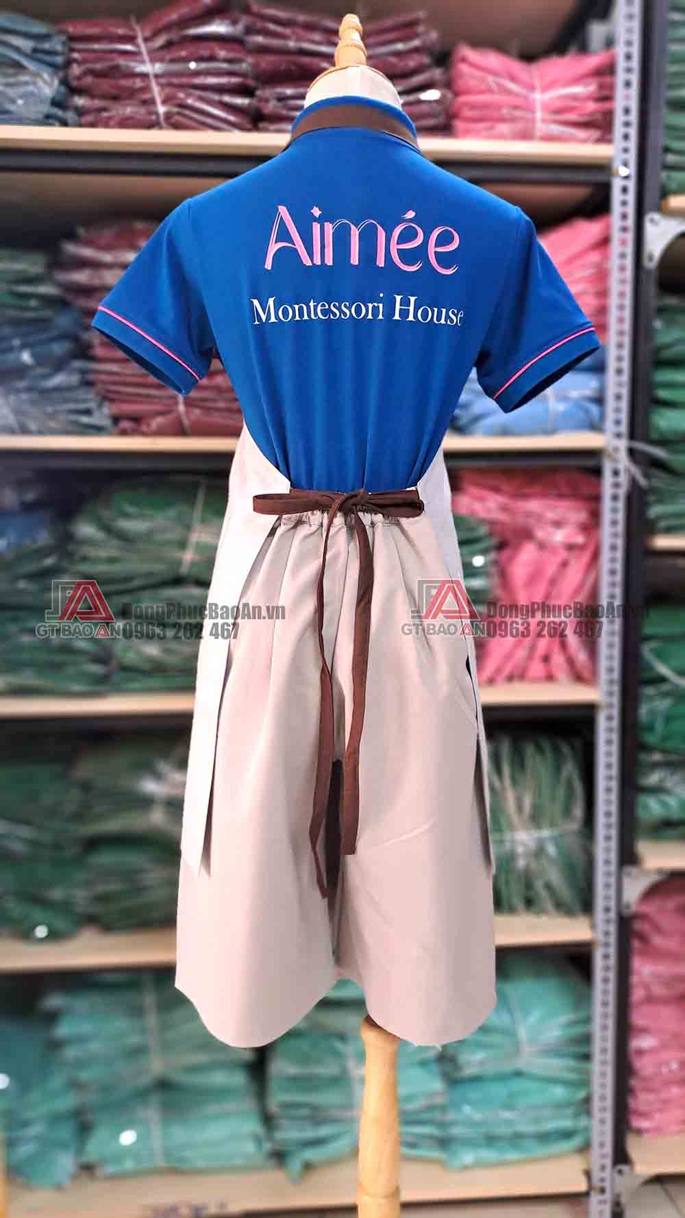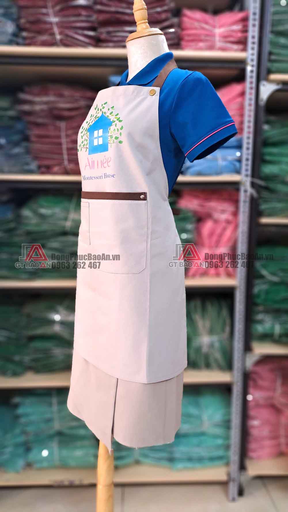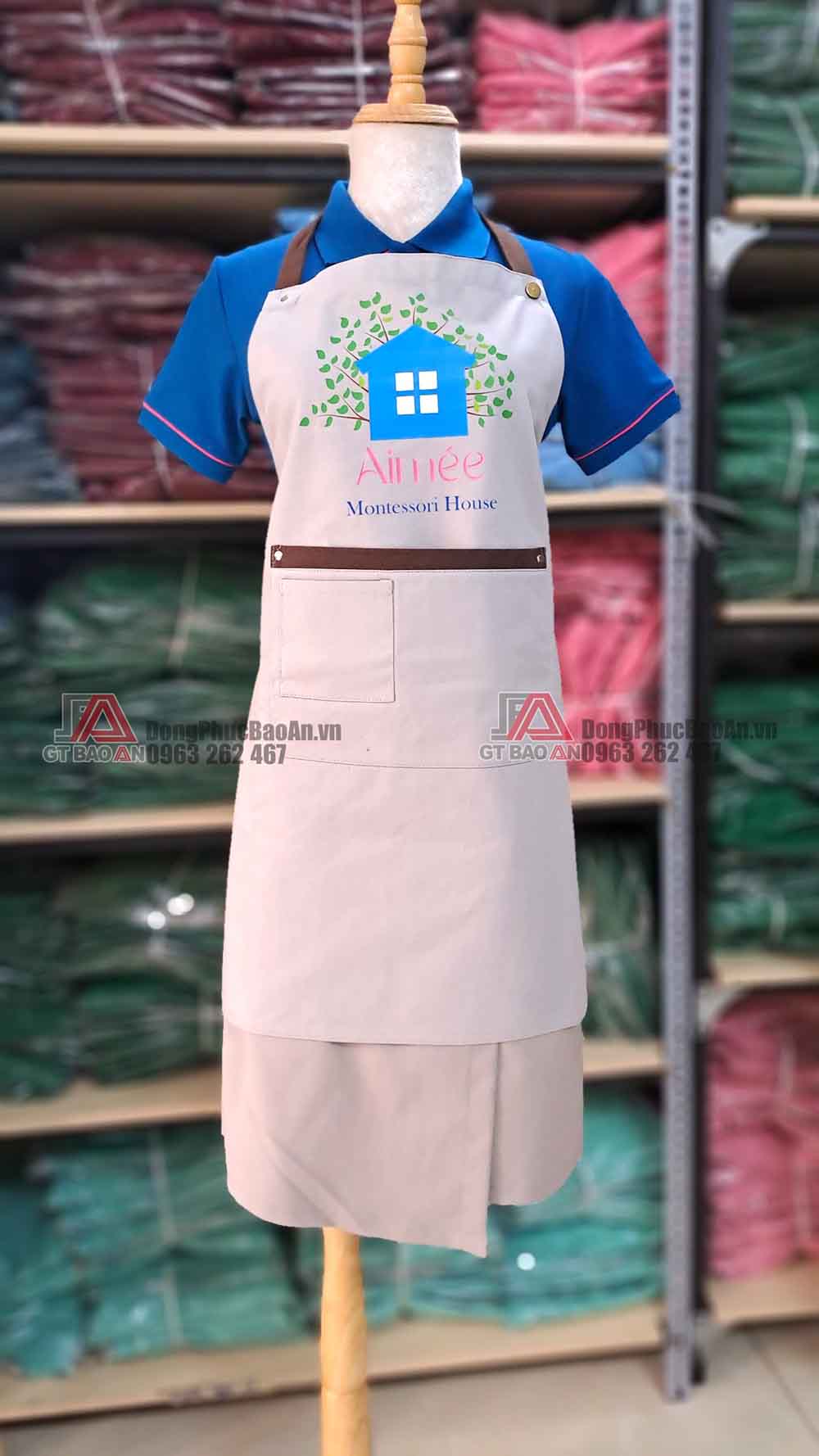Mẫu tạp dề đồng phục giáo viên in logo mầm non Aimée