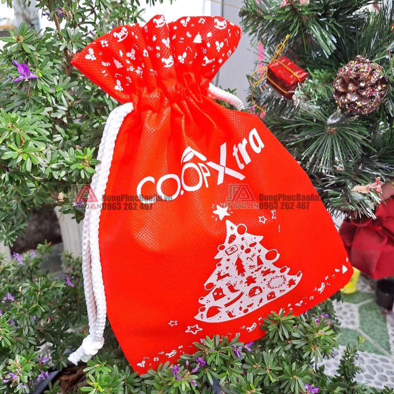 Túi vải dây rút màu đỏ đựng quà tặng dịp lễ tết, sự kiện của Co.op Xtra được may màu đỏ tươi nhân dịp Noel đến. Với thiết kế dây rút tiện lợi, kích thước (tuỳ chỉnh ) có thể đựng quà tặng cho khách hàng nhân ngày lễ tết, sự kiện, tri ân.