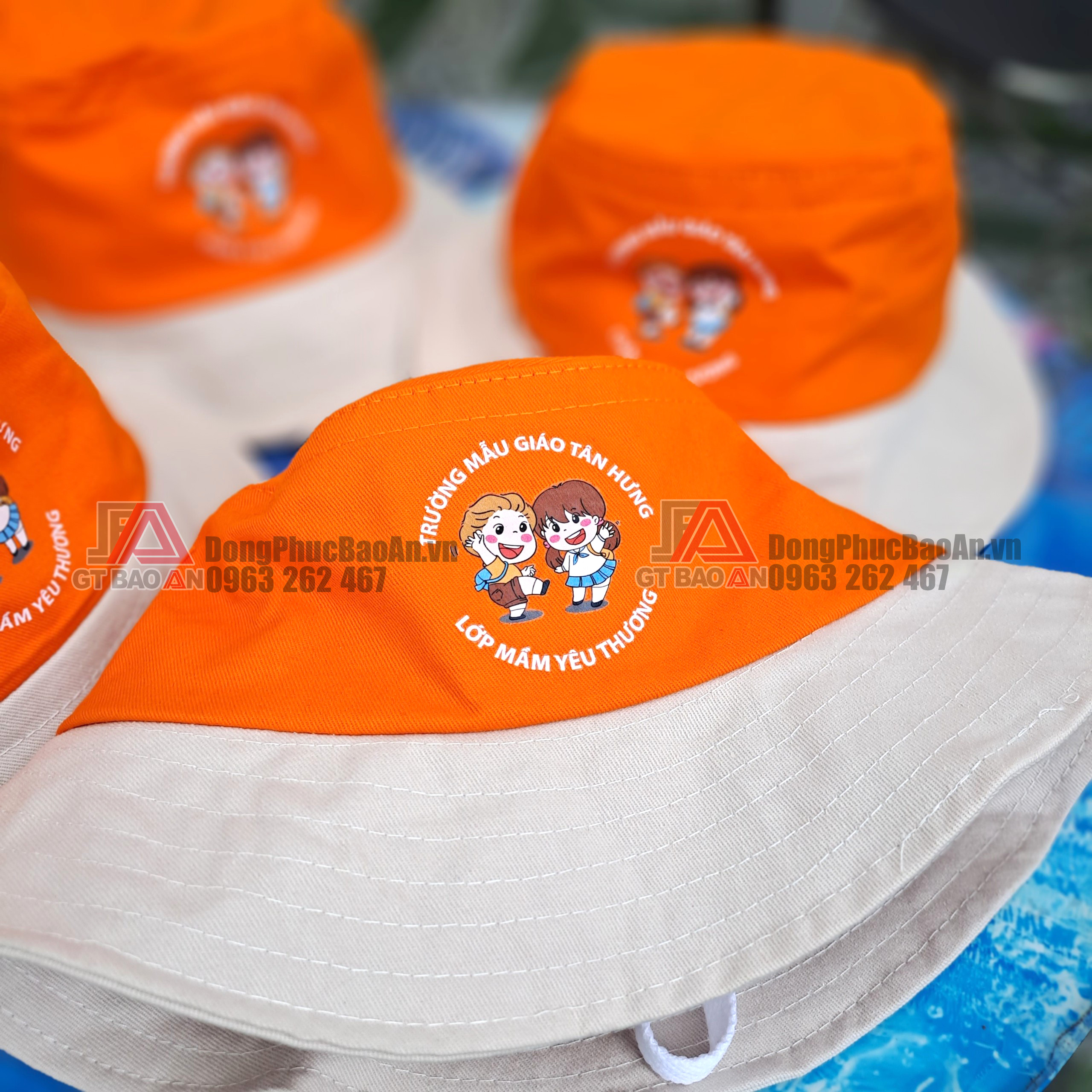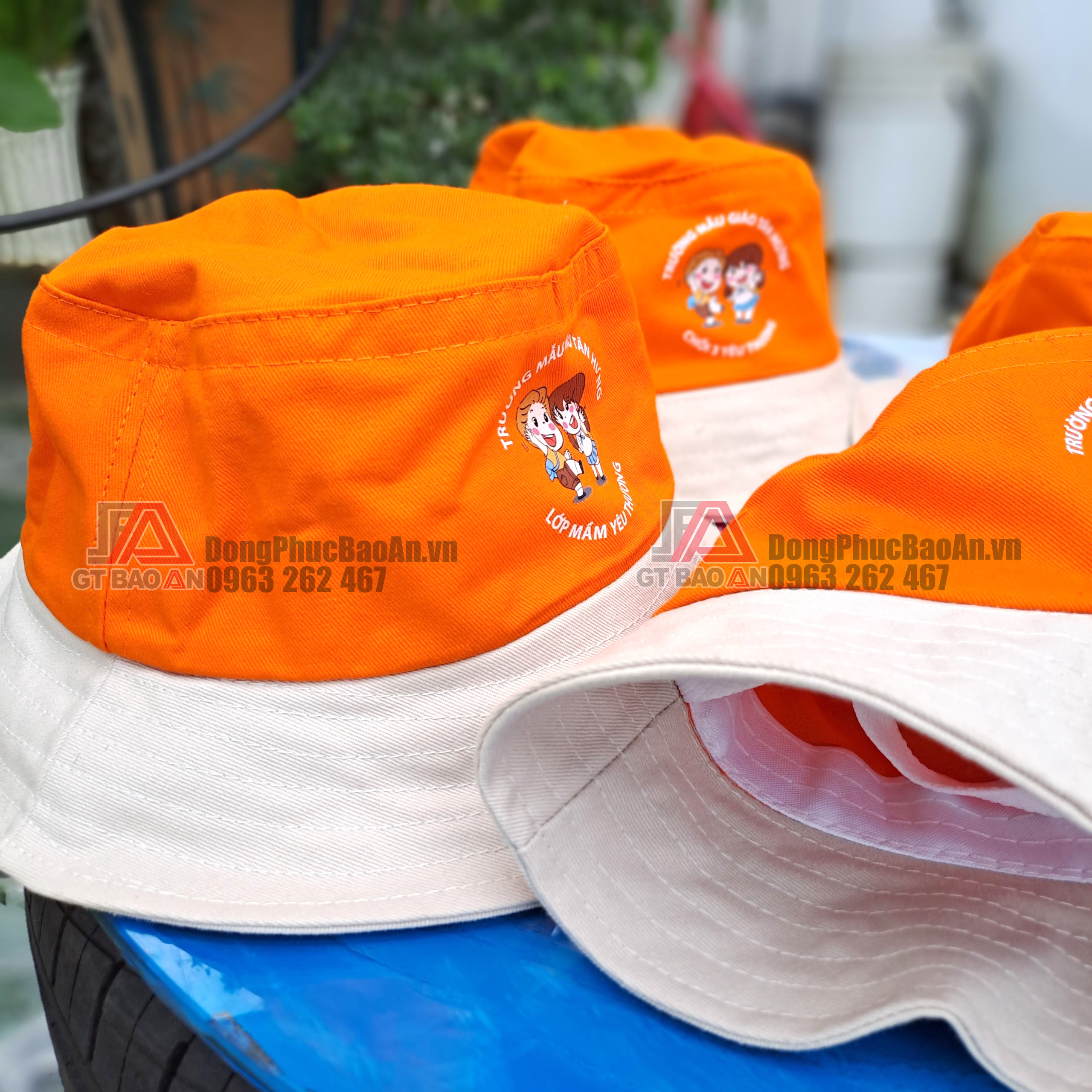 GT BẢO AN – Nhận in logo nón tai bèo trẻ em màu cam, in nhanh với số lượng ít giá rẻ TPHCM – Trường mẫu giáo Tân Hưng. Mời bạn tham khảo!