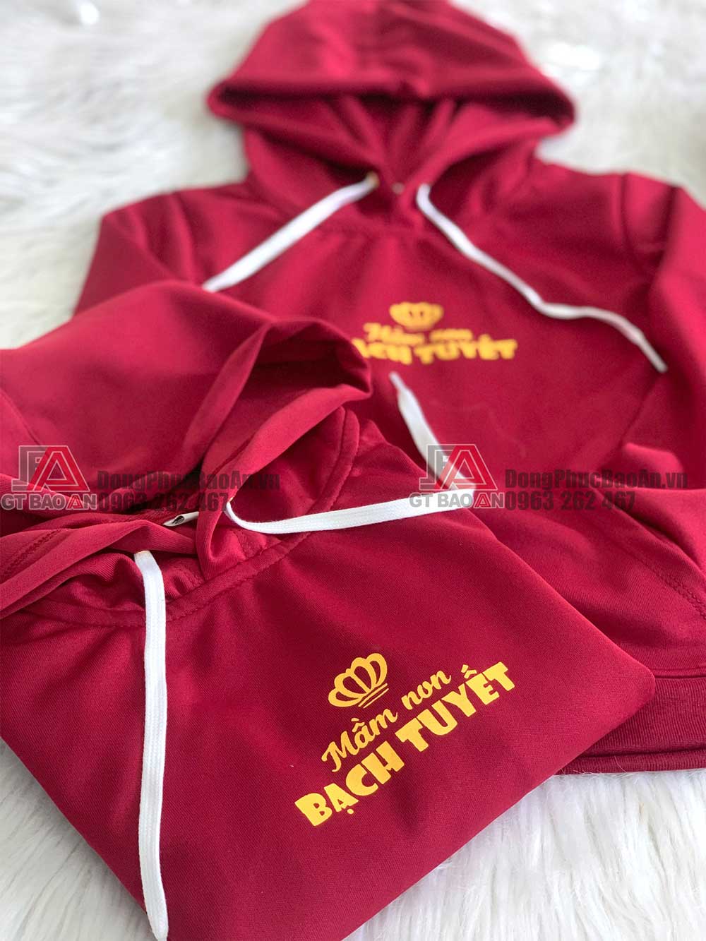 - Áo thiết kế có mũ trùm đầu nối liền với phần thân áo, giúp che nắng, chống bụi bẩn hiệu quả. Phần mũ có dây rút, giúp giữ nón chắc hơn. Áo không khóa kéo, có túi lớn trước bụng, để giữ ấm tay hoặc đựng những vật dụng học tập cần thiết. Tay áo dài, bo tay – bo lưng vải ôm dáng.