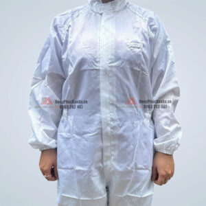 Quần áo chống tĩnh điện liền thân là trang phục bảo hộ chuyên dụng, bảo vệ người lao động trong môi trường phòng sạch, nhà máy điện tử, dược phẩm,… Với thiết kế áo liền quần tiện lợi, đi kèm mũ trùm đầu và bo thun ôm sát, sản phẩm mang đến khả năng chống tĩnh điện hiệu quả, đảm bảo an toàn tối đa cho người mặc. Đây là lựa chọn lý tưởng cho các doanh nghiệp muốn tăng cường tính chuyên nghiệp và bảo vệ trong sản xuất.