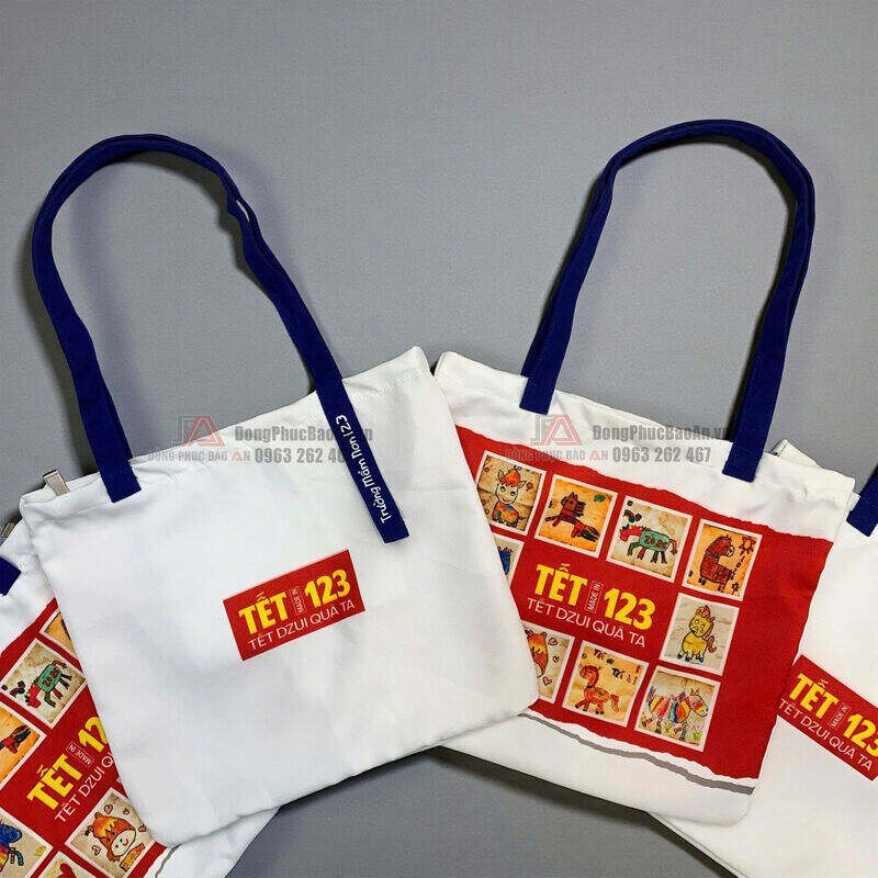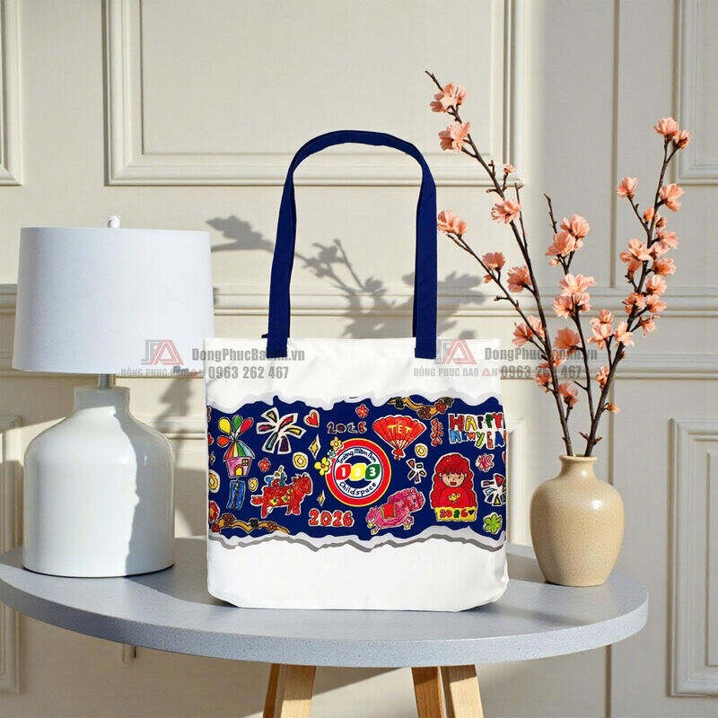 Không phải món quà đắt tiền, cũng không cầu kỳ hình thức, những chiếc túi canvas in tranh vẽ của chính các bé Trường Mầm non 123 lại mang đến cảm xúc rất riêng trong dịp Tết. Mỗi chiếc túi như một bức tranh mộc mạc, ngây thơ, được Đồng Phục Bảo An trực tiếp sản xuất và in ấn theo đơn đặt hàng, trở thành món quà Tết vừa ý nghĩa, vừa lưu giữ kỷ niệm tuổi thơ cho bé.