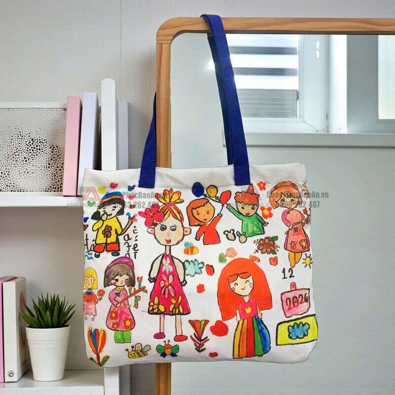 Khi được in trọn vẹn lên túi canvas, những bức tranh ấy không chỉ là hình ảnh trang trí, mà trở thành kỷ niệm tuổi thơ được “giữ lại” một cách rất tinh tế. Biến những chiếc túi bình thường trở nên đặc biệt ý nghĩa, nhất là khi sử dụng để làm túi quà tặng Tết.