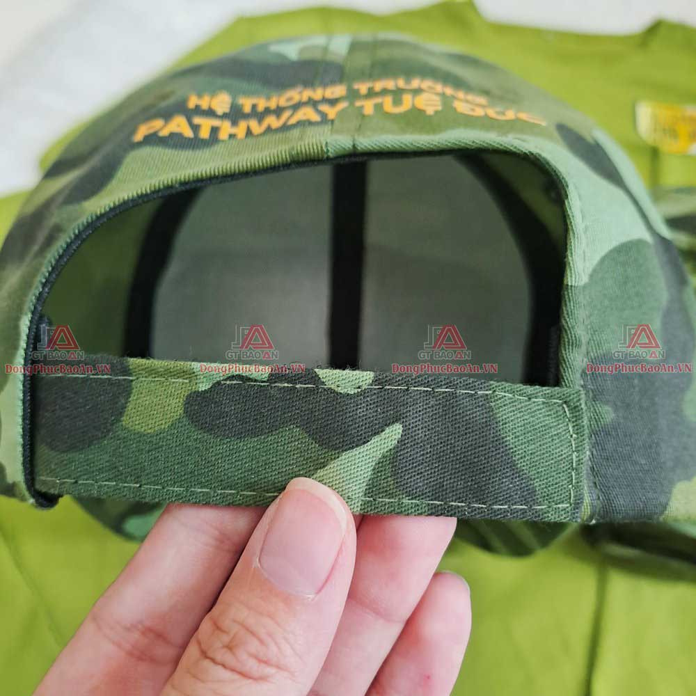 Việc may nón lính đồng phục cho phụ huynh, giáo viên dành cho những buổi hoạt động ngoại khóa. Bên cạnh áo đồng phục thì nón đồng phục cũng được may kèm theo. Mẫu nón gam màu xanh rằn ri đặc trưng của quân đội là lựa chọn hiện nay.
